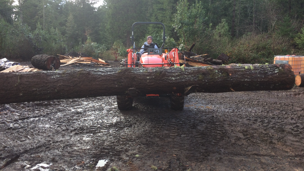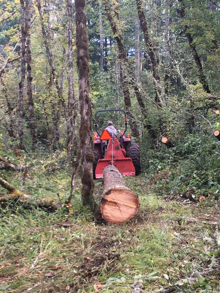 We have a Kubota four wheel drive MX5100 tractor along with a Farmi logging winch. The tractor and winch can move large logs with ease. We have large chainsaws that we use on a daily basis. We use our dump bed trailer to haul logs for our customers to our site as well.